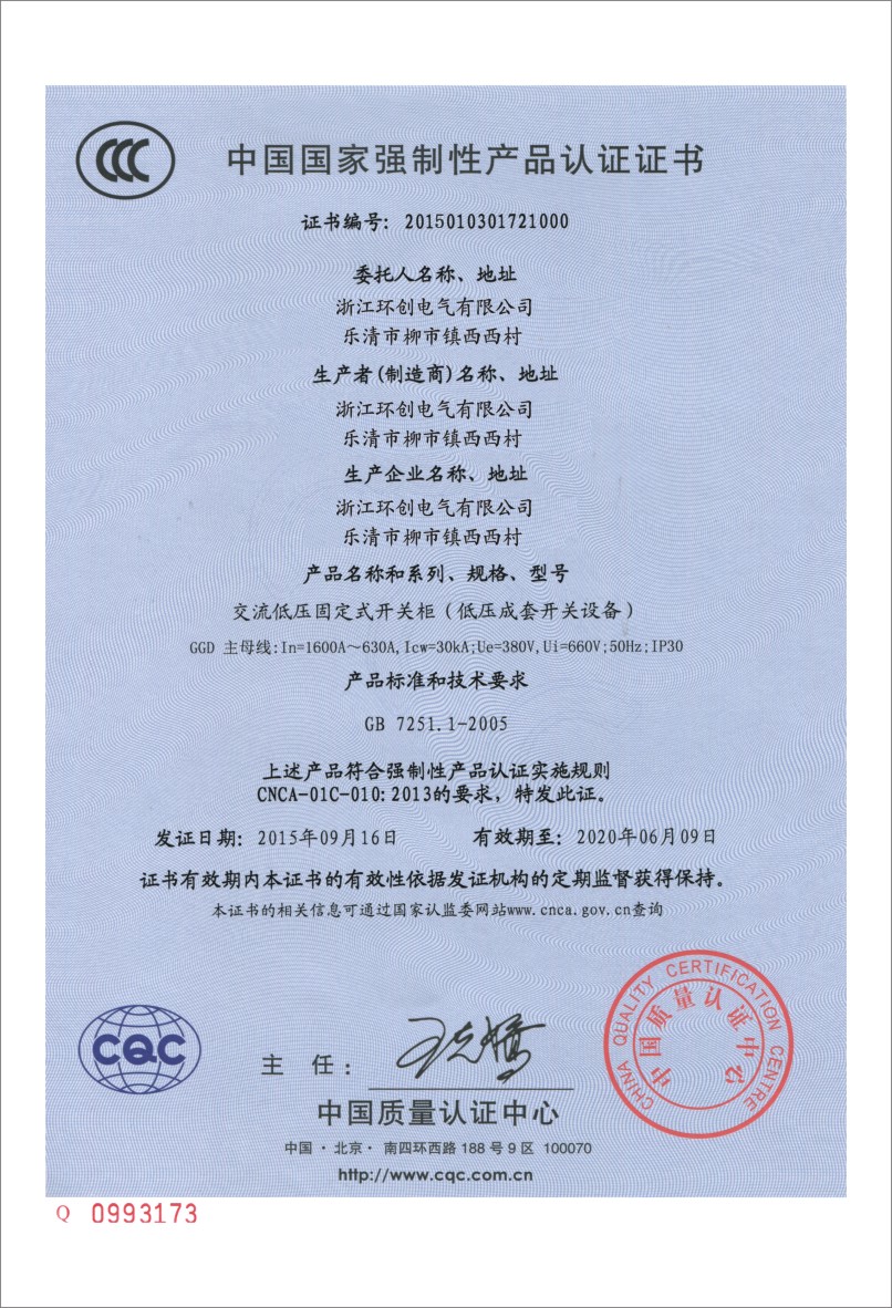GGD交流低壓開關(guān)柜3C證書