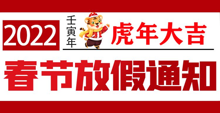 新的一年里心想事成、財源廣進、虎氣沖天、虎虎生威、虎年大吉!我司2022年春節(jié)放假時間為:1月29日-2月6日(共9天),2月7日(初七)正式上班,放假期間,如有業(yè)務(wù)問題咨詢,請撥打400-081-5586全國客服熱線,謝謝!